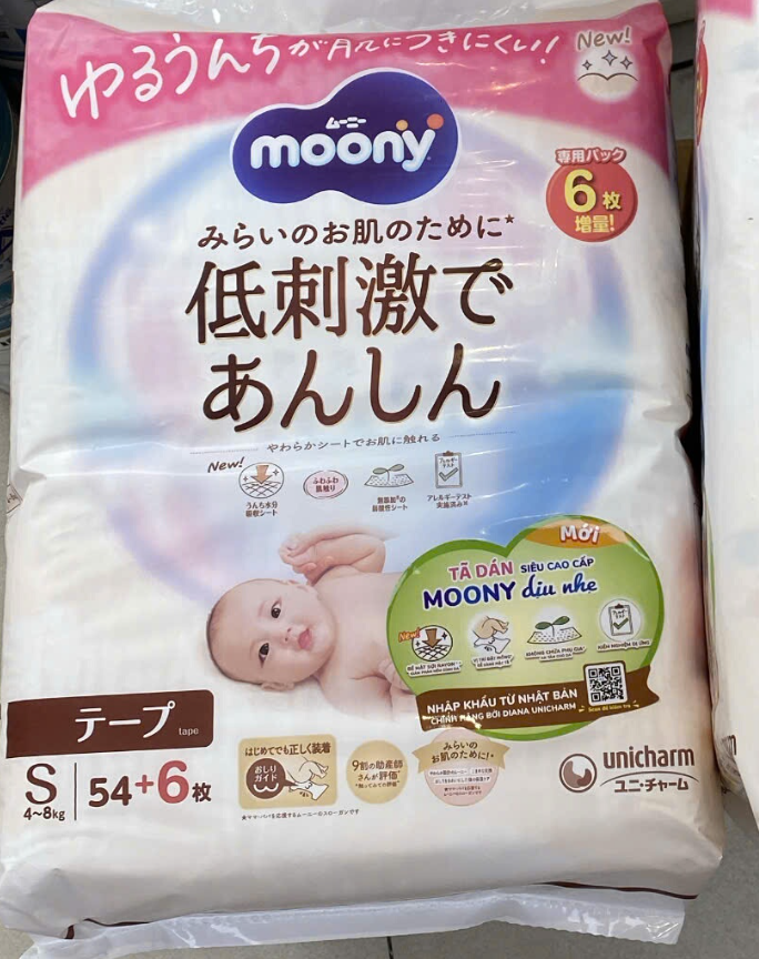 Sản phẩm do công ty Diana Unicharm nhập khẩu về Việt Nam và phân phối. Quý khách hàng nên chọn mua tã Moony chính hãng để được bảo hành đổi trả khi gặp bất kỳ vấn đề nào với sản phẩm. Bỉm Moony chính hãng là bỉm có tem phụ tiếng Việt như hình bên dưới: