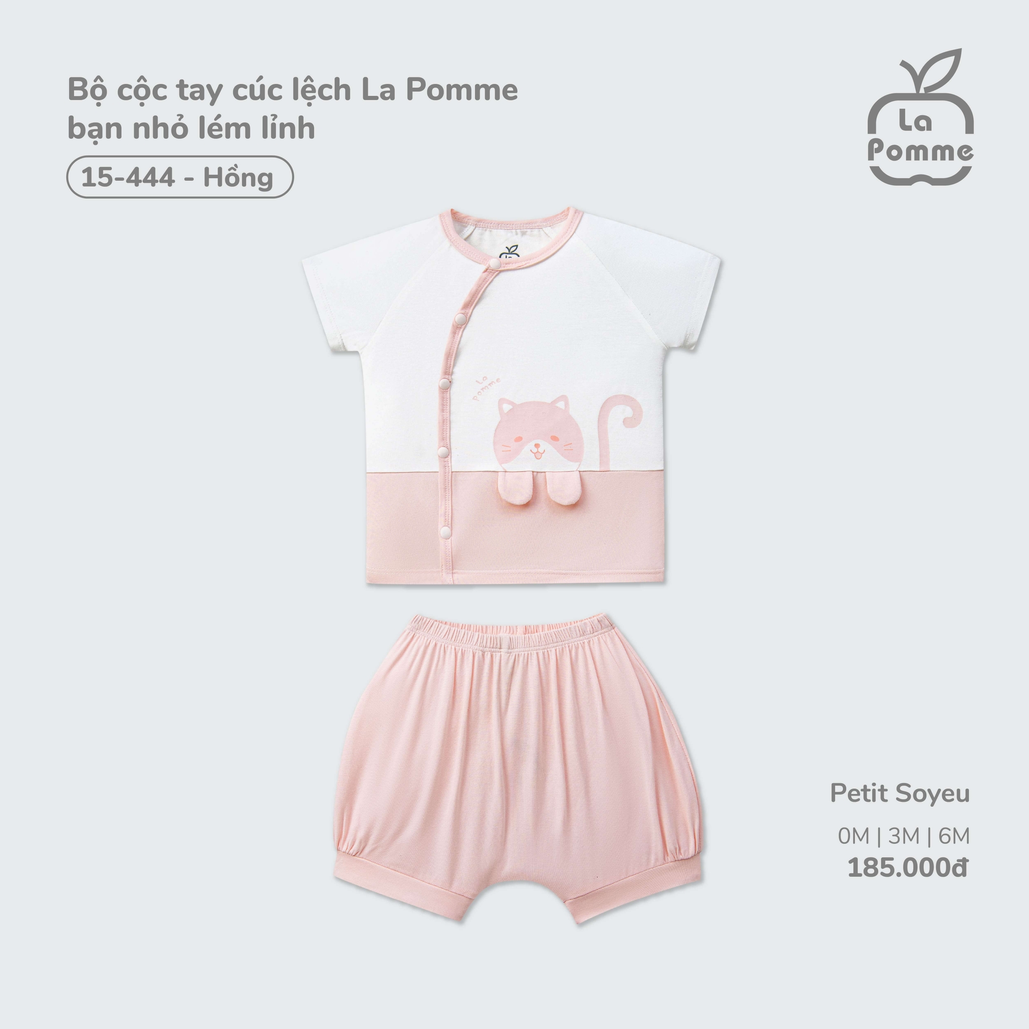 Bộ cộc tay cúc lệch La Pomme bạn nhỏ lém lỉnh Hồng (3M,6M)