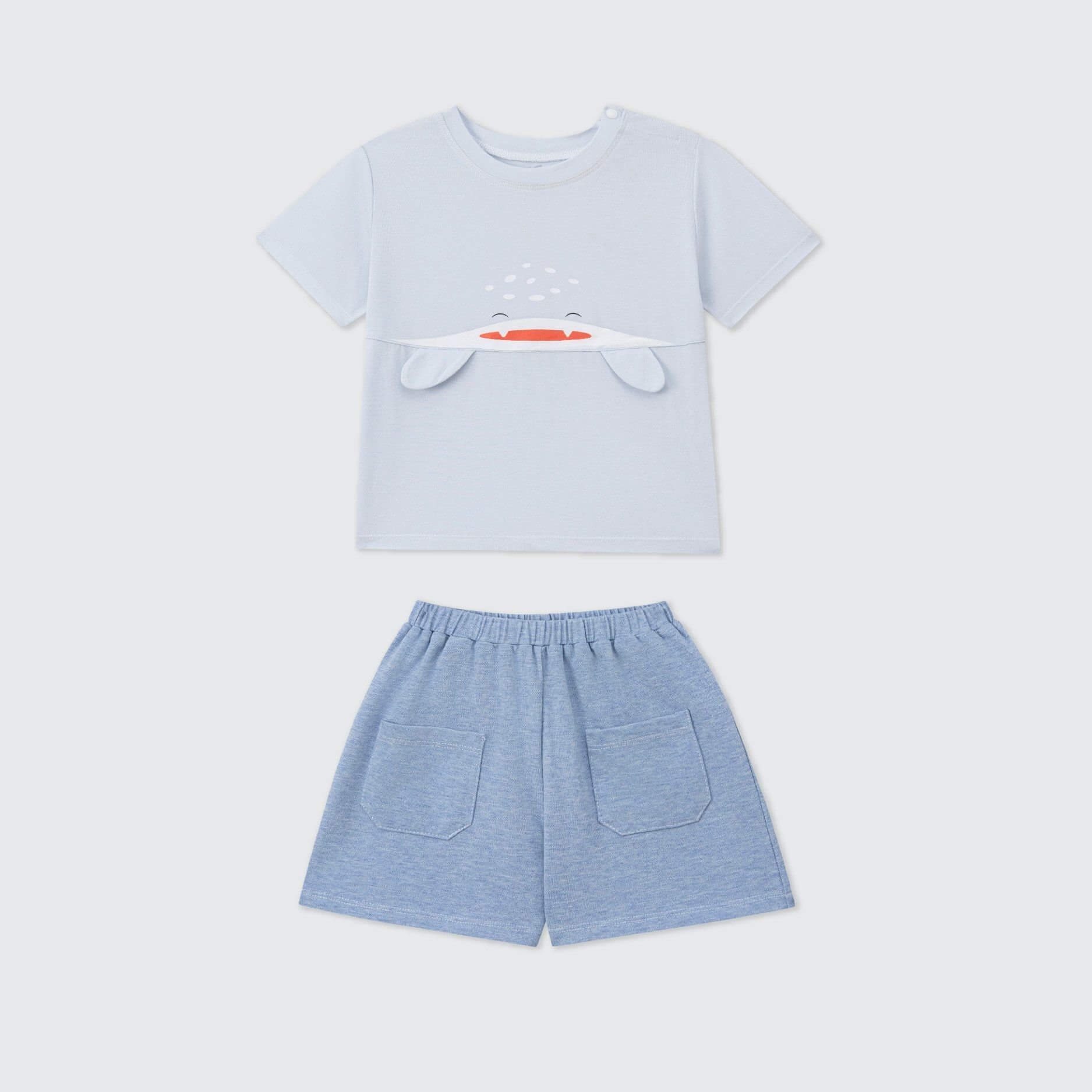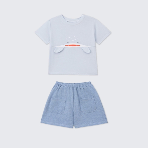 Bộ cộc tay La Pomme baby shark - 12,18M,3,4,5Y Xanh