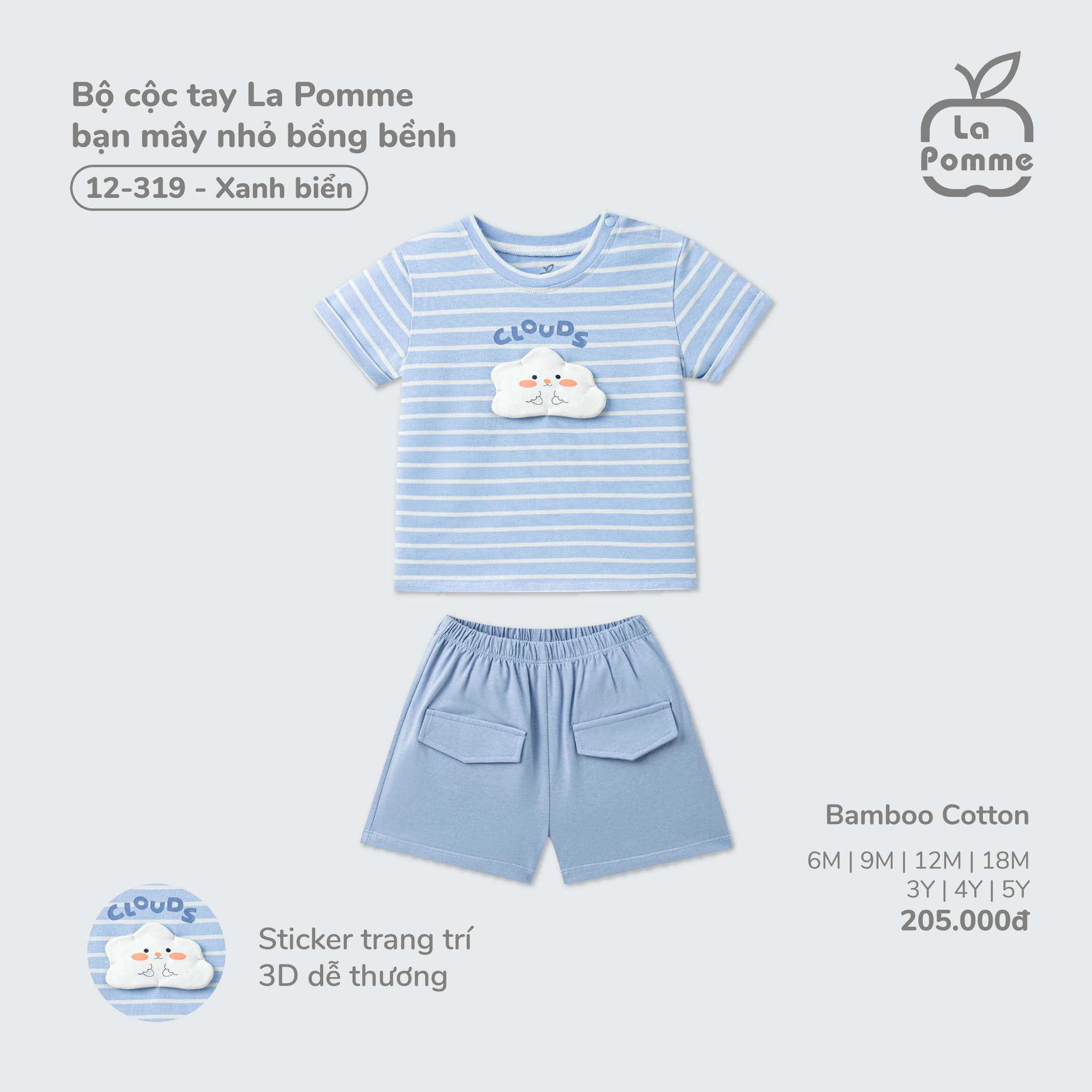 Bộ cộc tay La Pomme bạn mây nhỏ bồng bềnh Xanh biển (6M,9M,12M,18M,3Y,4Y,5Y)