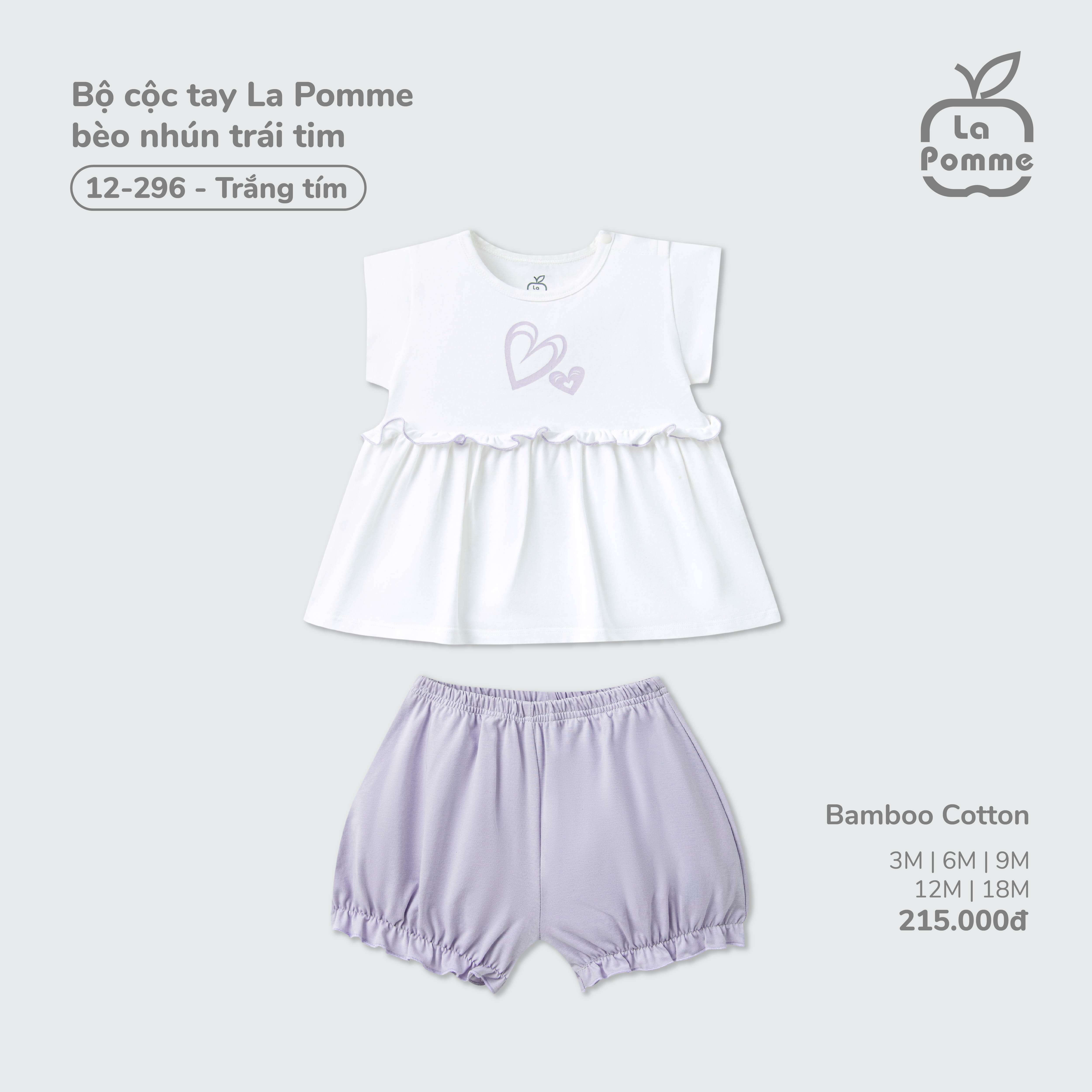 Bộ cộc tay La Pomme bèo nhún trái tim Trắng tím (3M,6M,9M,12M,18M)
