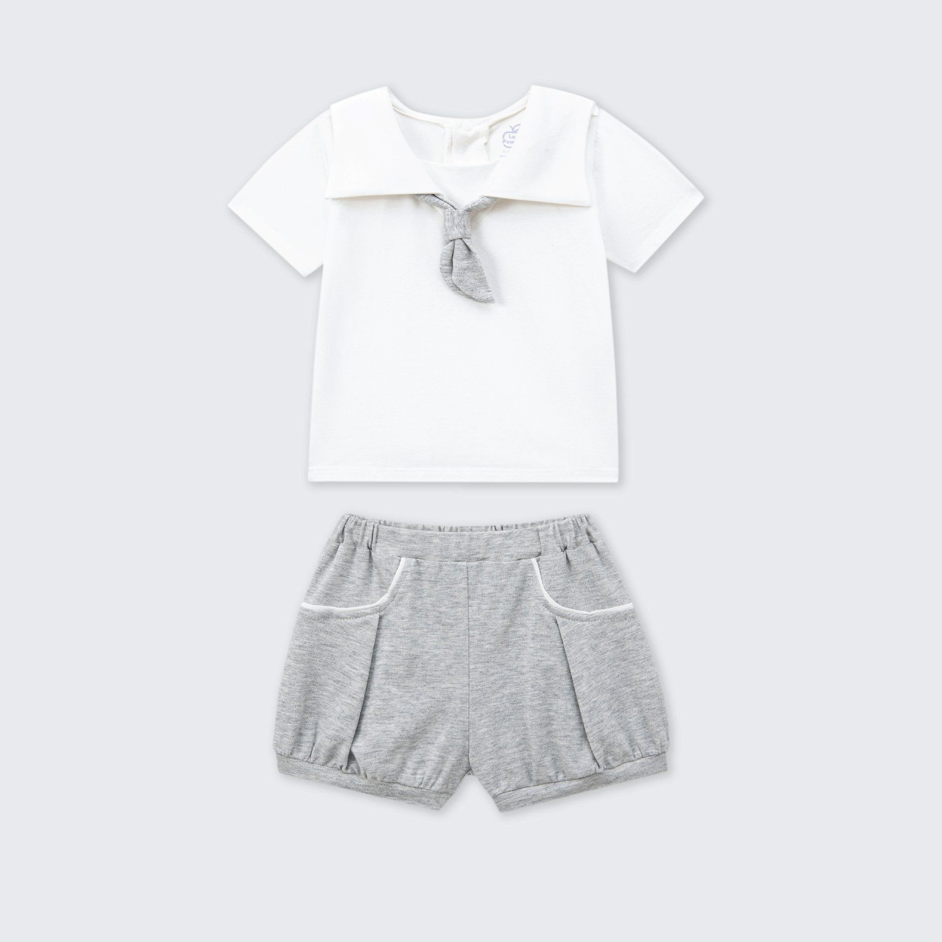Bộ cộc tay La Pomme chào ngày mới vui nhộn - 6,9,12,18M Trắng