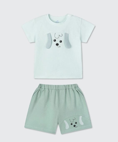 Bộ cộc tay La Pomme Chơi cùng bé con - 6,9,12,18M Xanh
