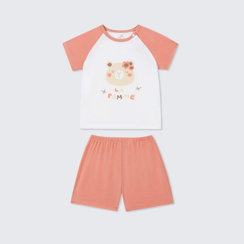 Bộ cộc tay La Pomme raglan người bạn ngộ nghĩnh - 9,12,18M,3Y Hồng