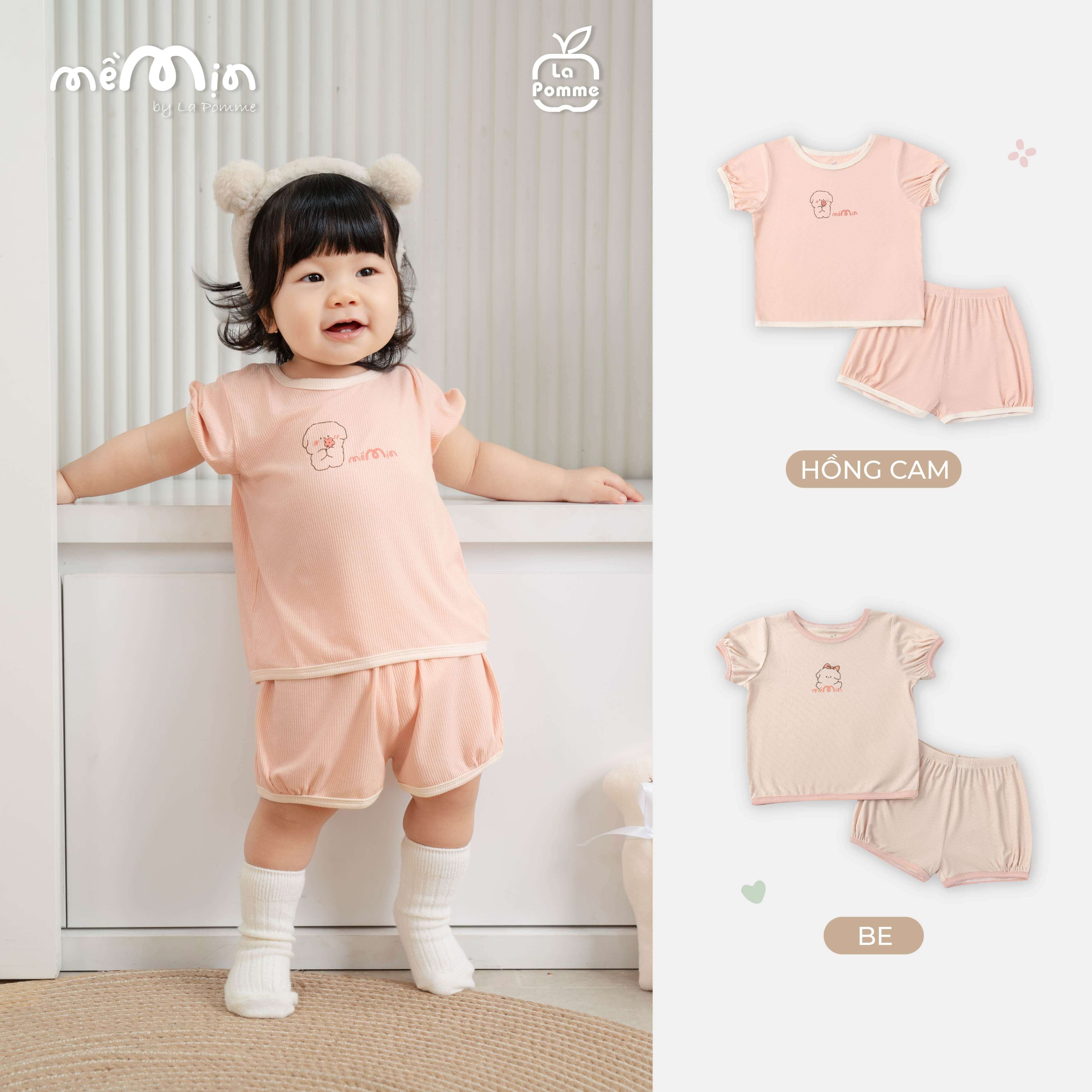 Bộ cộc tay Mềm Mịn by La Pomme kẹo bông ngọt ngào Hồng Cam (6M,9M,12M,18M,3Y,4Y,5Y)