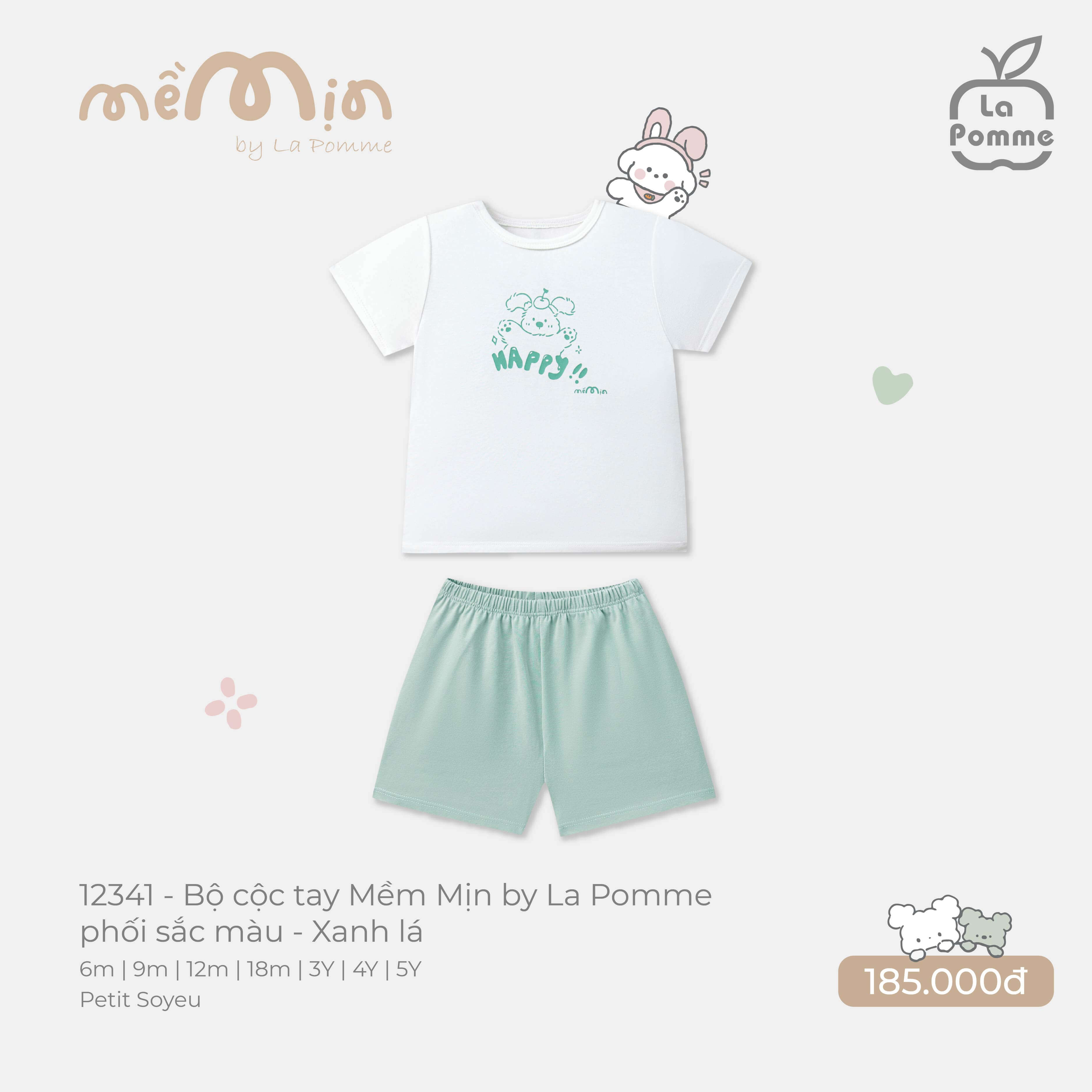 Bộ cộc tay Mềm Mịn by La Pomme phối sắc màu Xanh lá (6M,9M,12M,18M,3Y,4Y,5Y)