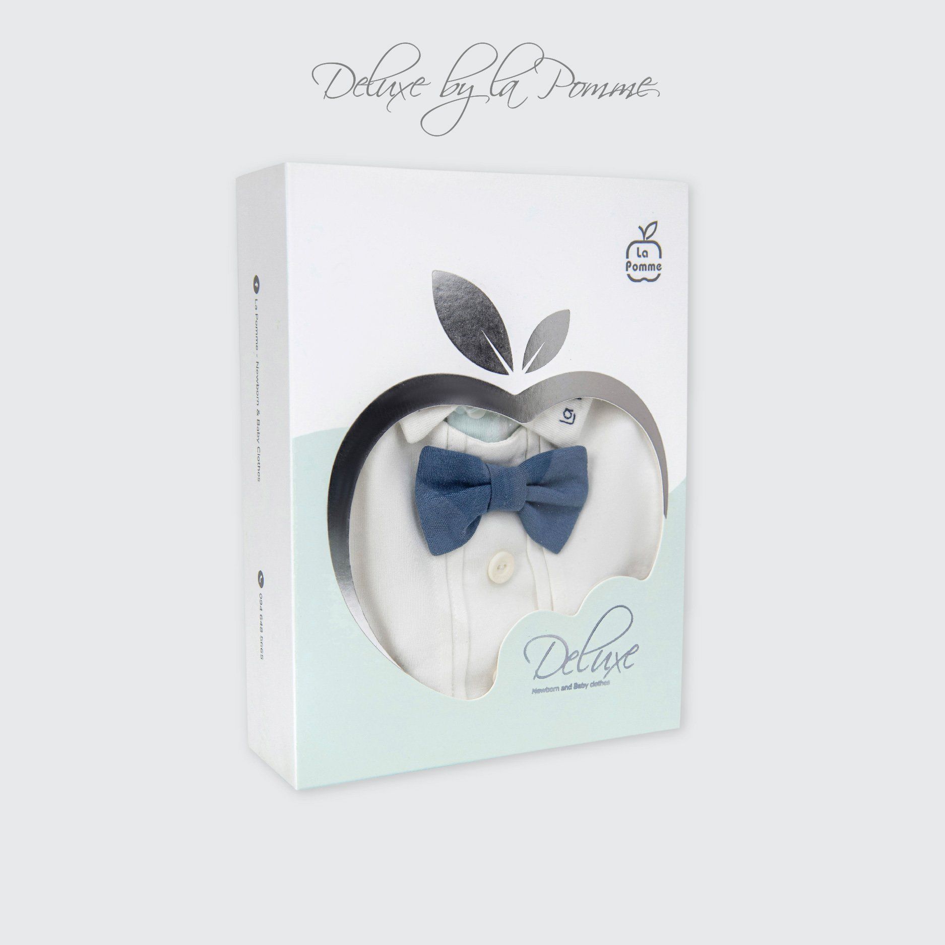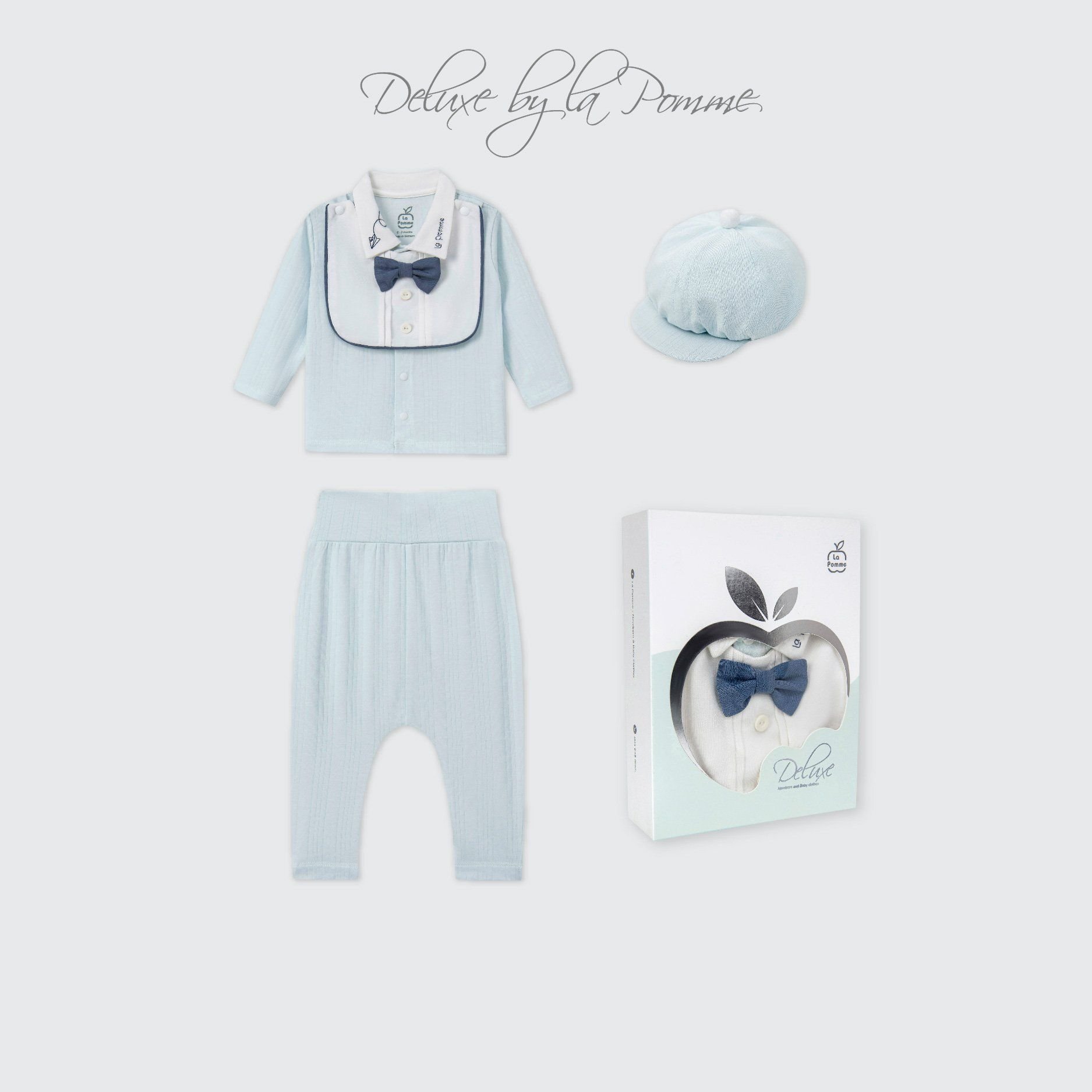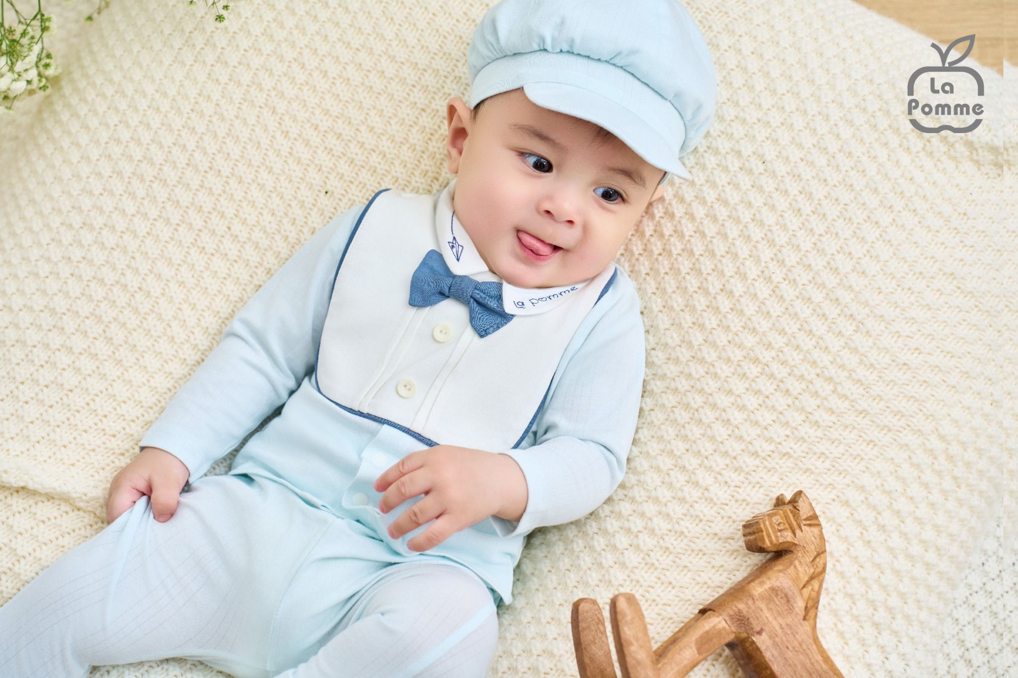 Bộ dài tay cài khuy kèm mũ La Pomme Deluxe thêu cổ thanh lịch - 0,3M Xanh