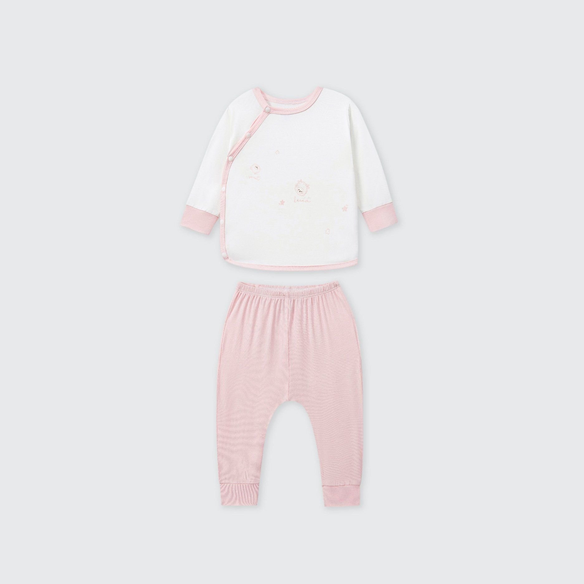Bộ dài tay cúc lệch La Pomme họa tiết nhí cách điệu - Newborn,0,3M Hồng