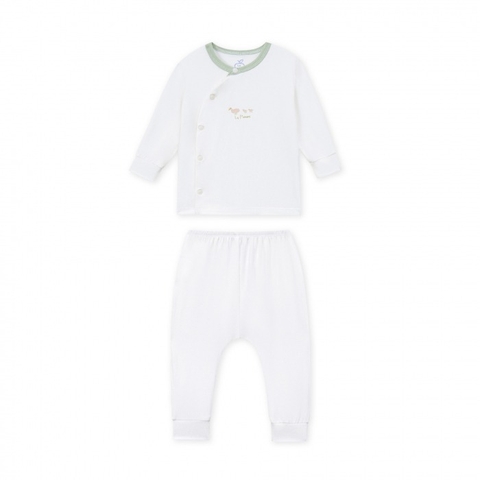 Bộ dài tay cúc lệch La Pomme Nông trại vui nhộn - Newborn,0,3M Xanh