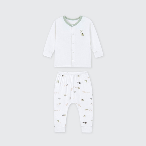 Bộ dài tay cúc thẳng La Pomme Nông trại vui nhộn - Newborn,0,3M Xanh