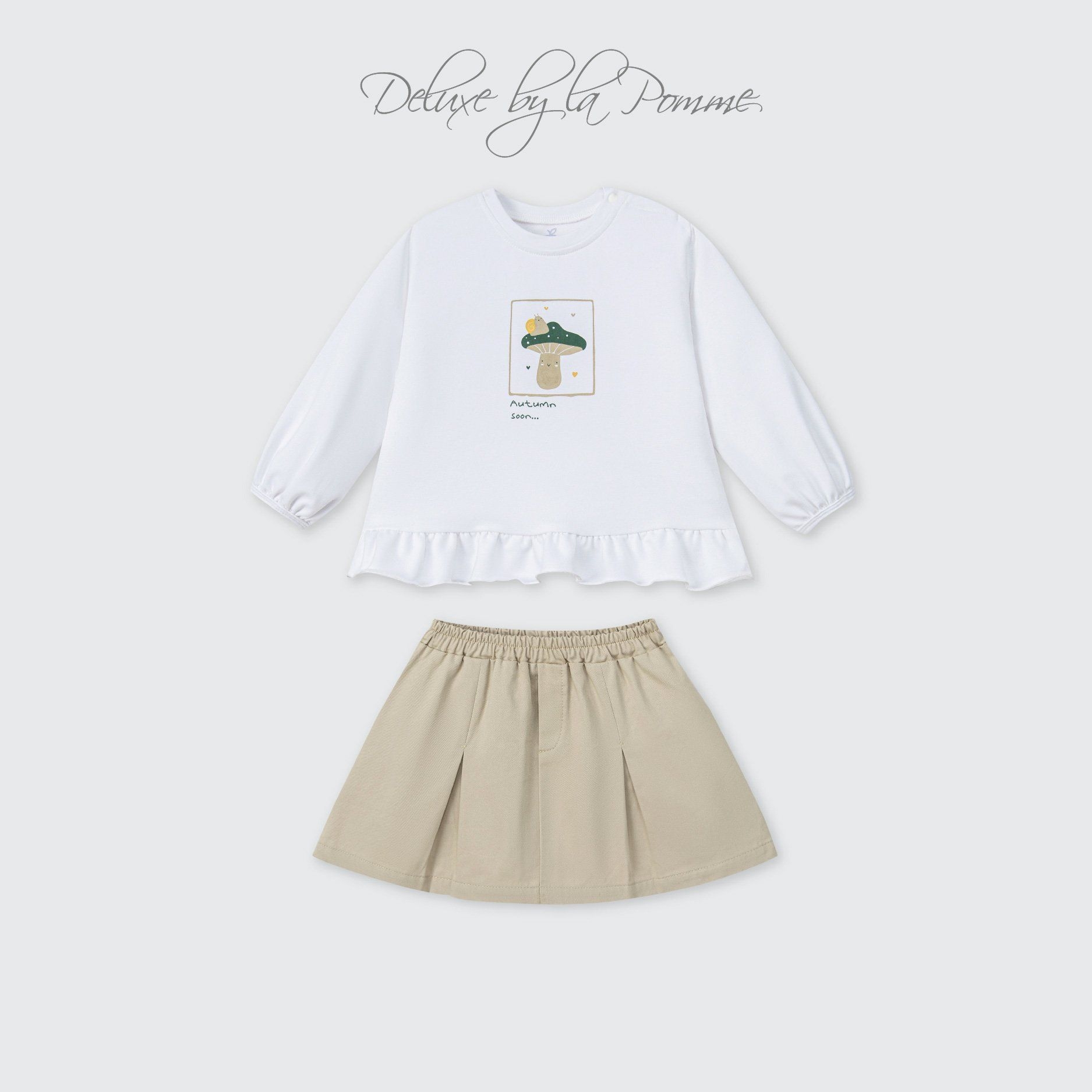Bộ dài tay La Pomme bèo nhún quý cô nước Pháp - 9,12,18M, 3Y Trắng