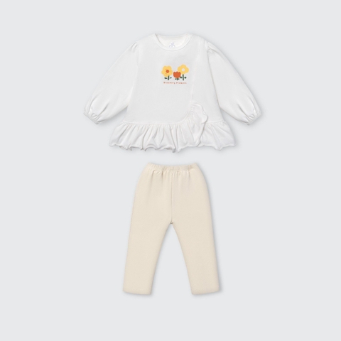 Bộ dài tay La Pomme bèo nhún vườn hoa ươm nắng - 6,9,12,18M,3Y Trắng