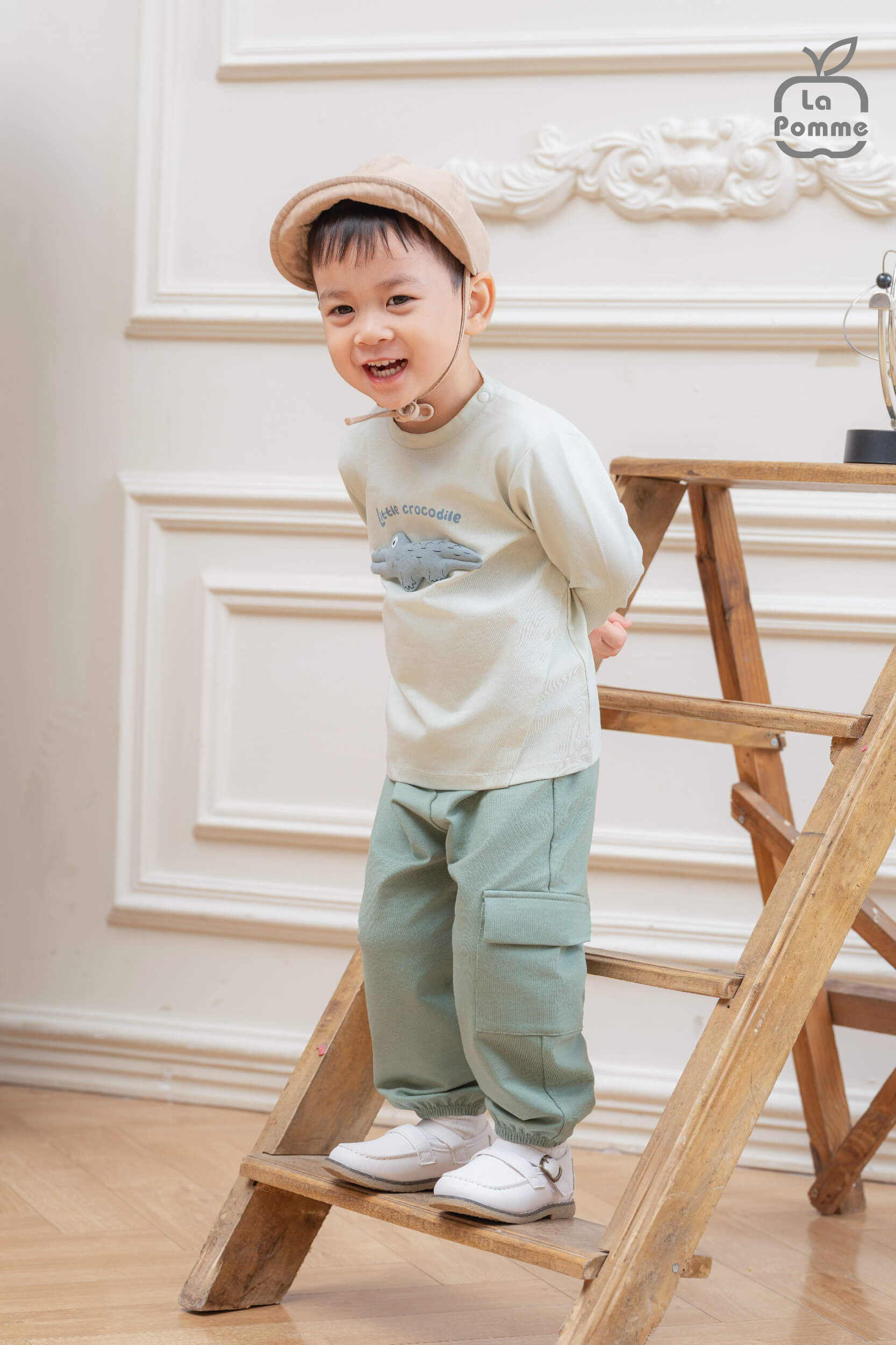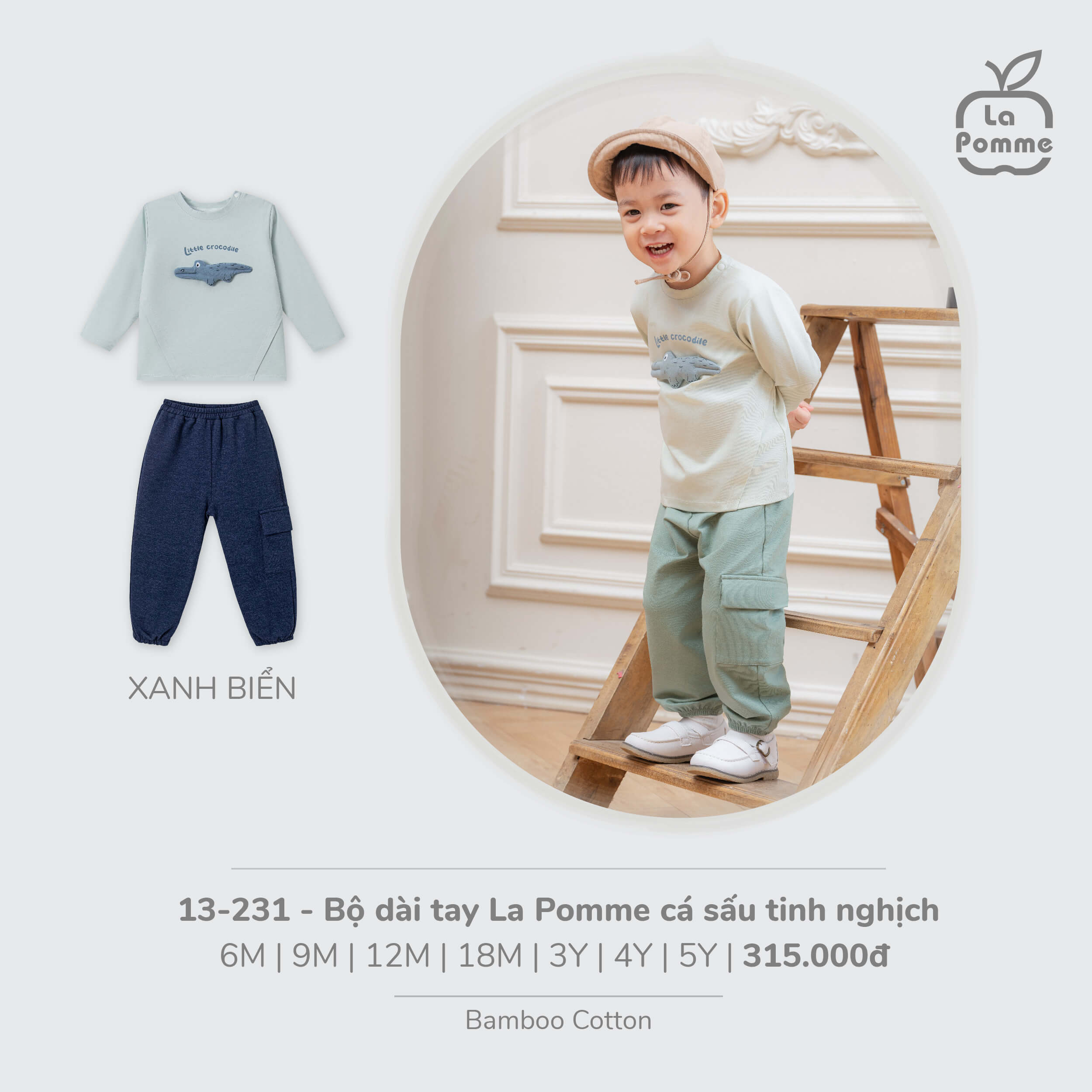 Bộ dài tay La Pomme cá sấu tinh nghịch - 6,9,12,18M,3Y,4Y,5Y Xanh biển