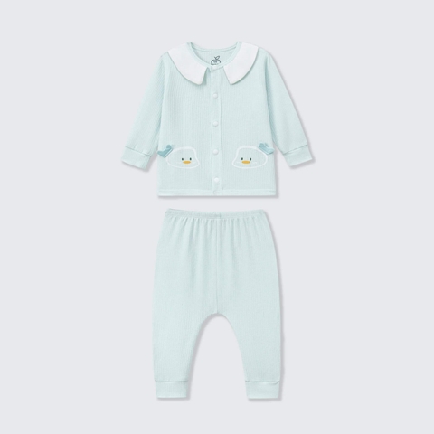Bộ dài tay La Pomme cúc thẳng Bé yêu bồng bềnh - Newborn,0,3 Be Xanh