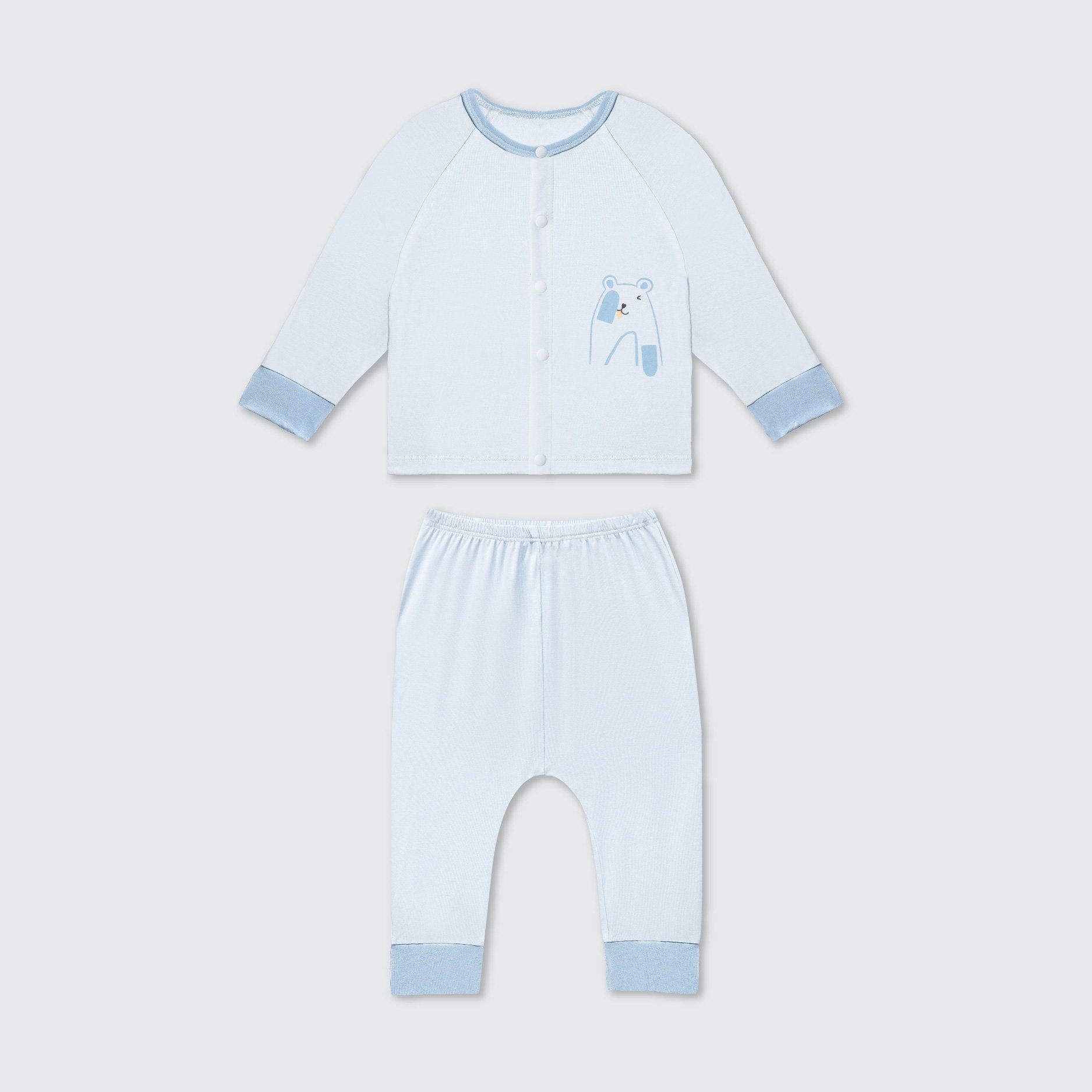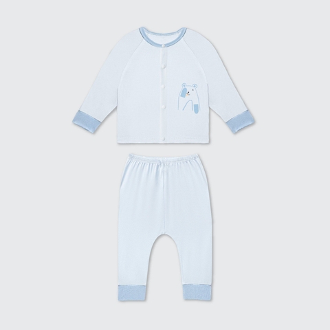 Bộ dài tay La Pomme cúc thẳng Gấu yêu của mẹ - Newborn,0M,3M Xanh