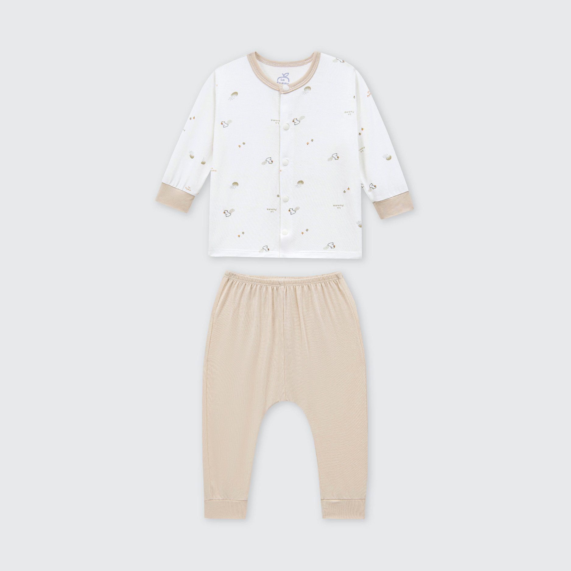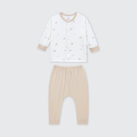 Bộ dài tay La Pomme cúc thẳng Họa tiết bé xinh - Newborn,0M,3M Be