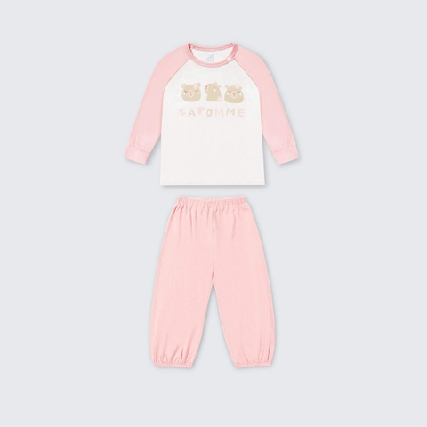 Bộ dài tay La Pomme raglan thế giới vui nhộn - 6,9,12,18M,3Y,4Y,5Y Hồng