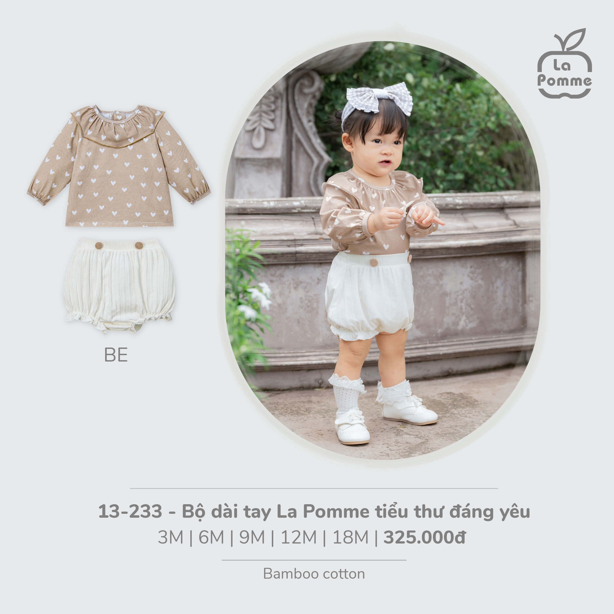 Bộ dài tay La Pomme tiểu thư đáng yêu - 6,9,12,18M Be