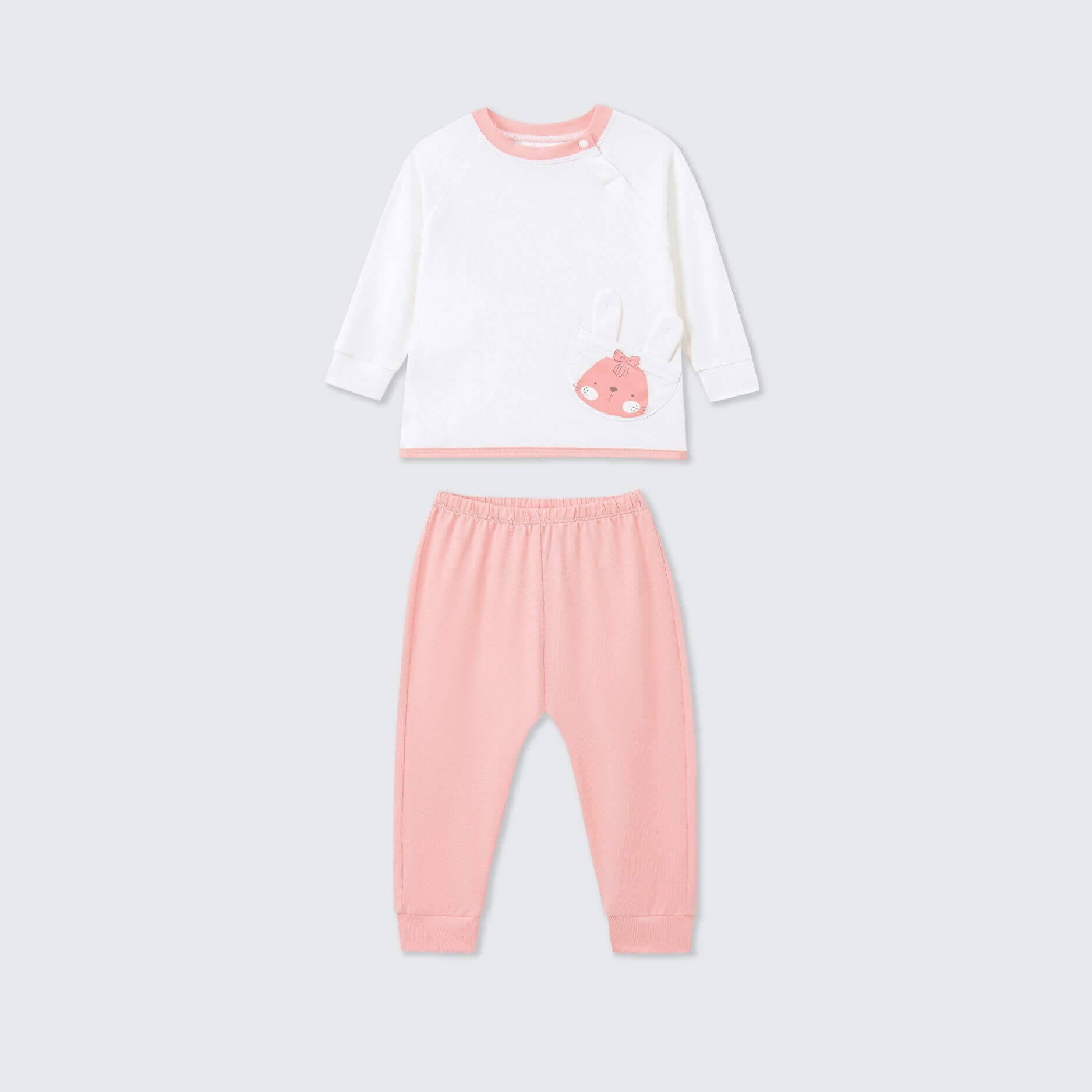 Bộ dài tay La Pomme túi áo kỳ thú - 6,9,12,18M Hồng