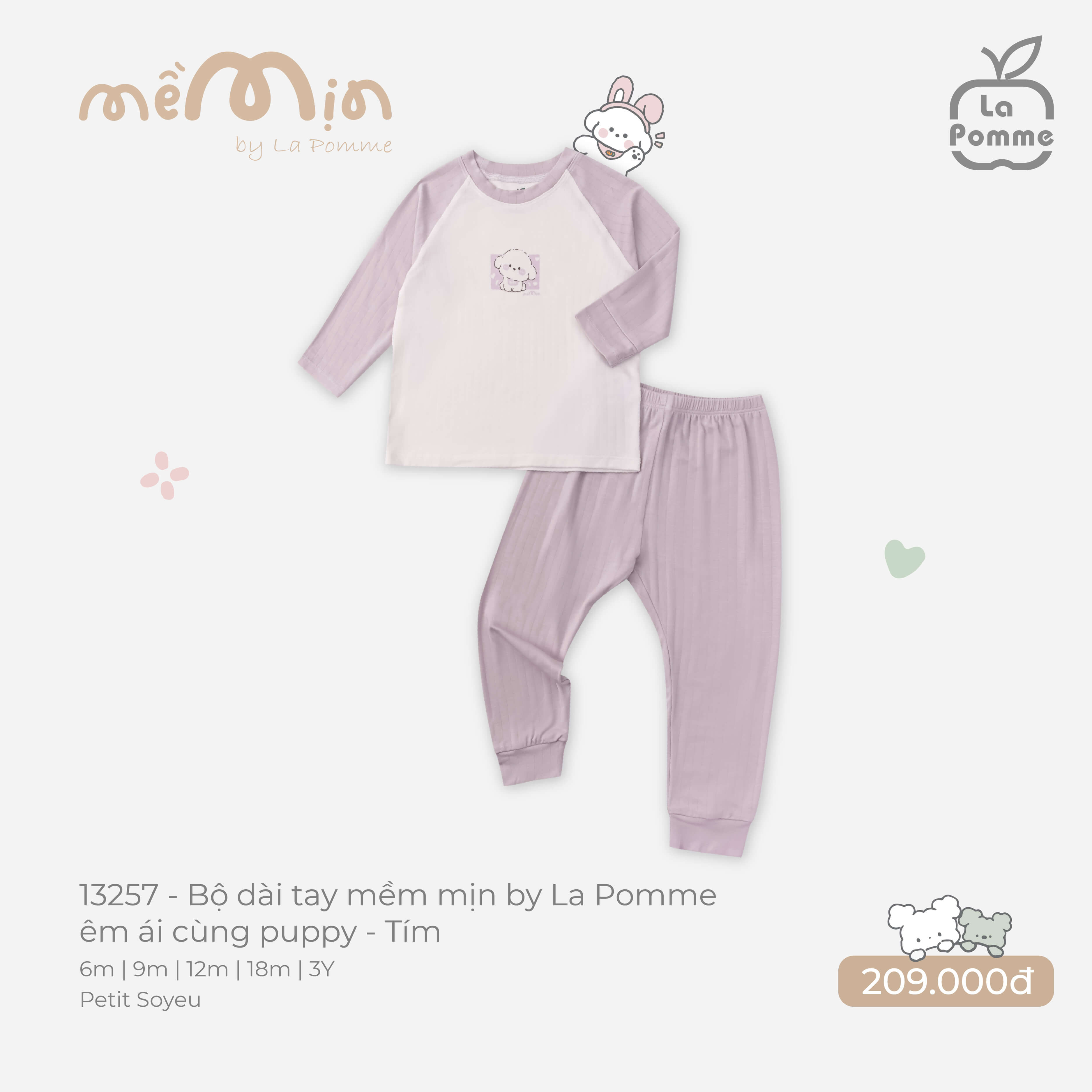 Bộ dài tay mềm mịn by La Pomme êm ái cùng puppy - 6,9,12,18M,3Y Cam