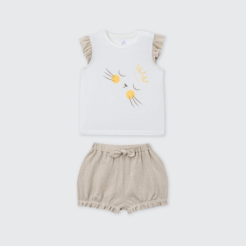 Bộ sát nách La Pomme mèo vương miện - 3,6,9,12,18M Trắng