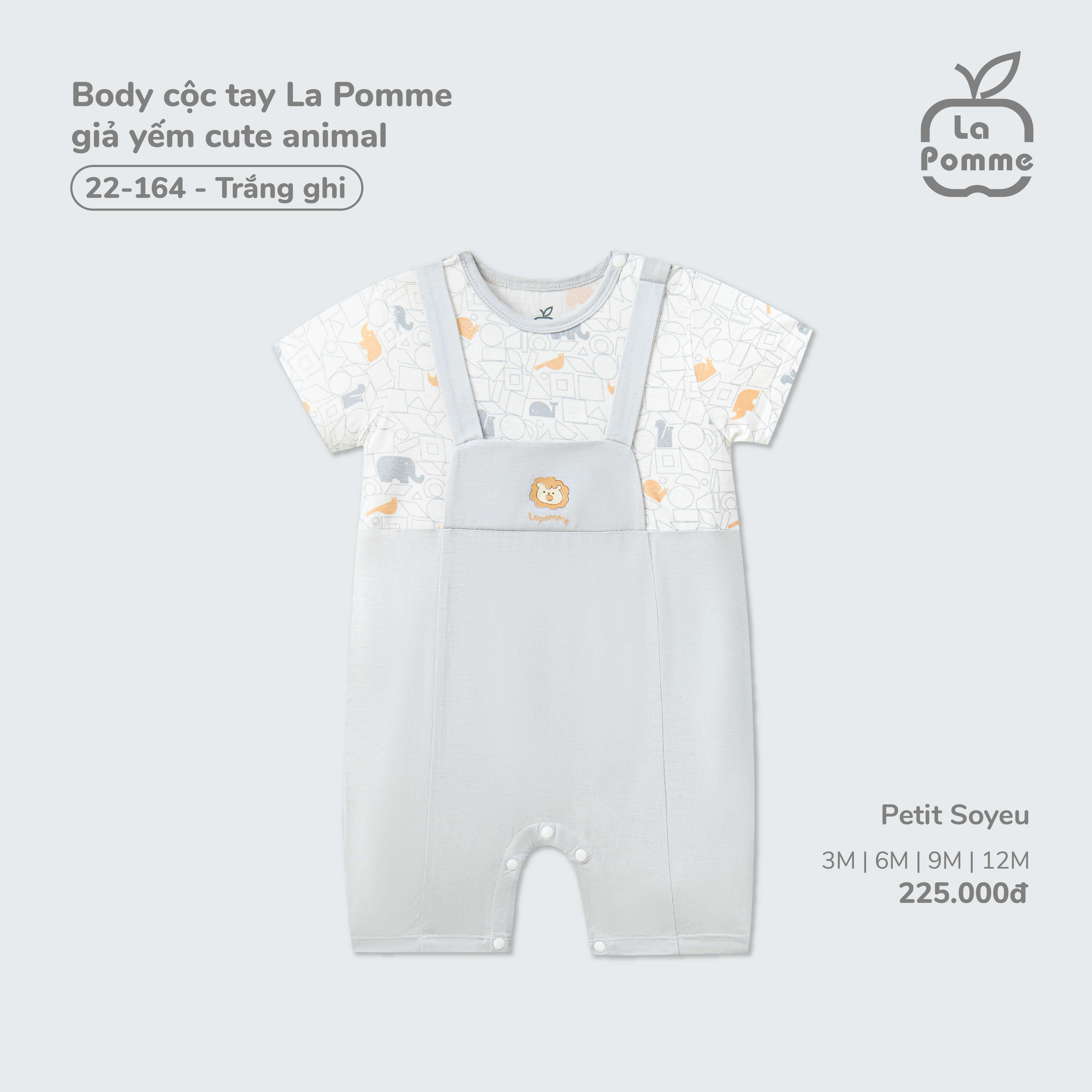 Body cộc tay La Pomme giả yếm cute animal Trắng Ghi (3M,6M,9M,12M)