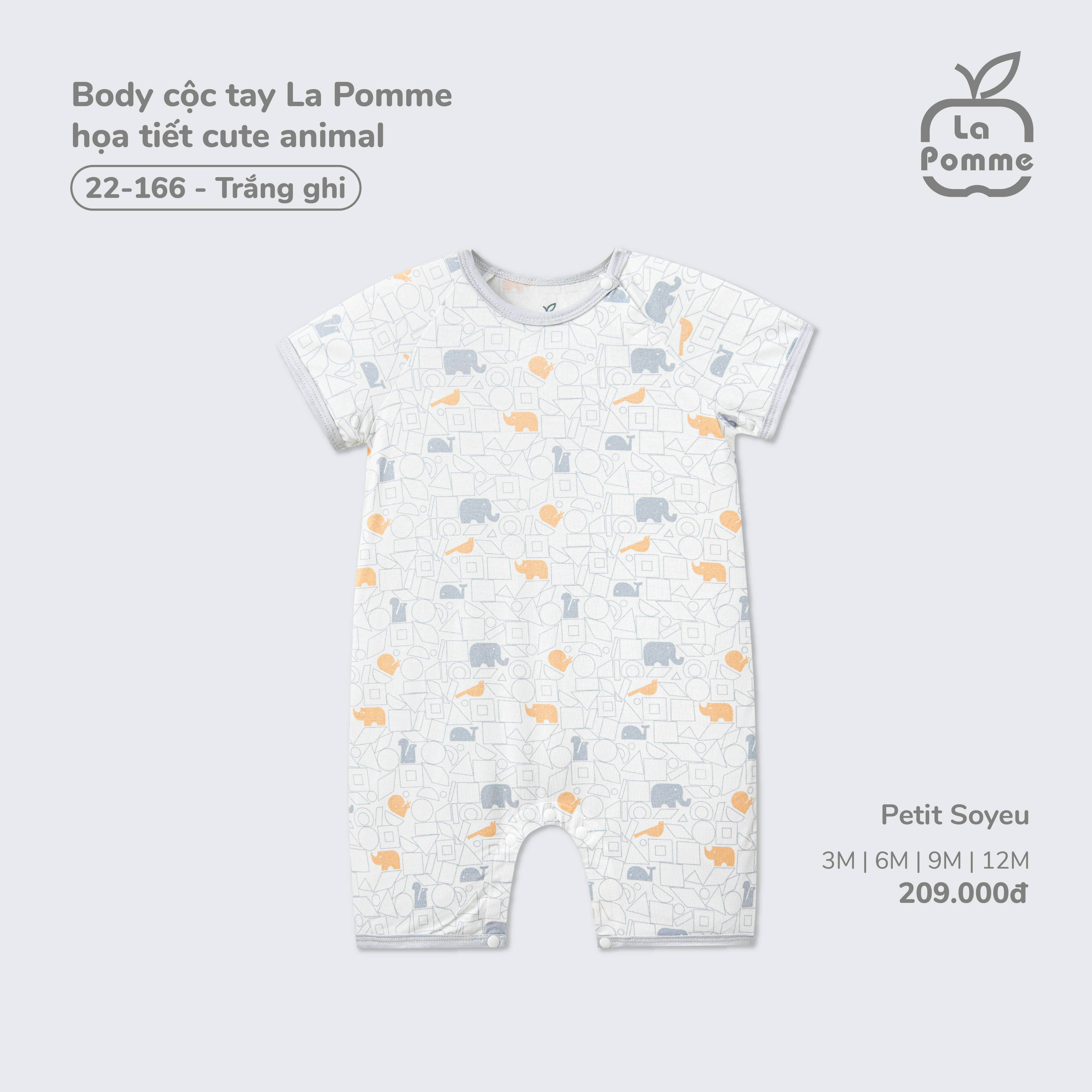 Body cộc tay La Pomme họa tiết cute animal Trắng Ghi (3M,6M,9M,12M)