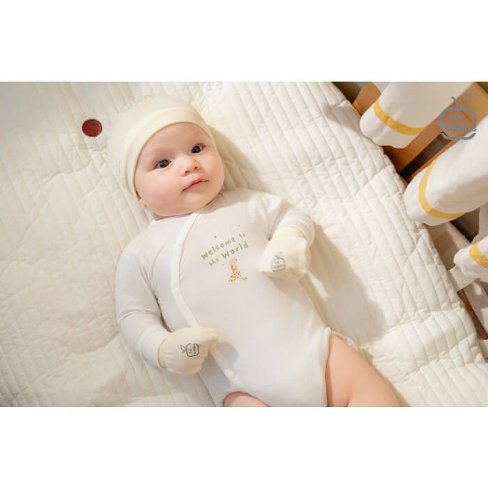 Body dài tay La Pomme dễ thương - Newborn,0,3M Trắng