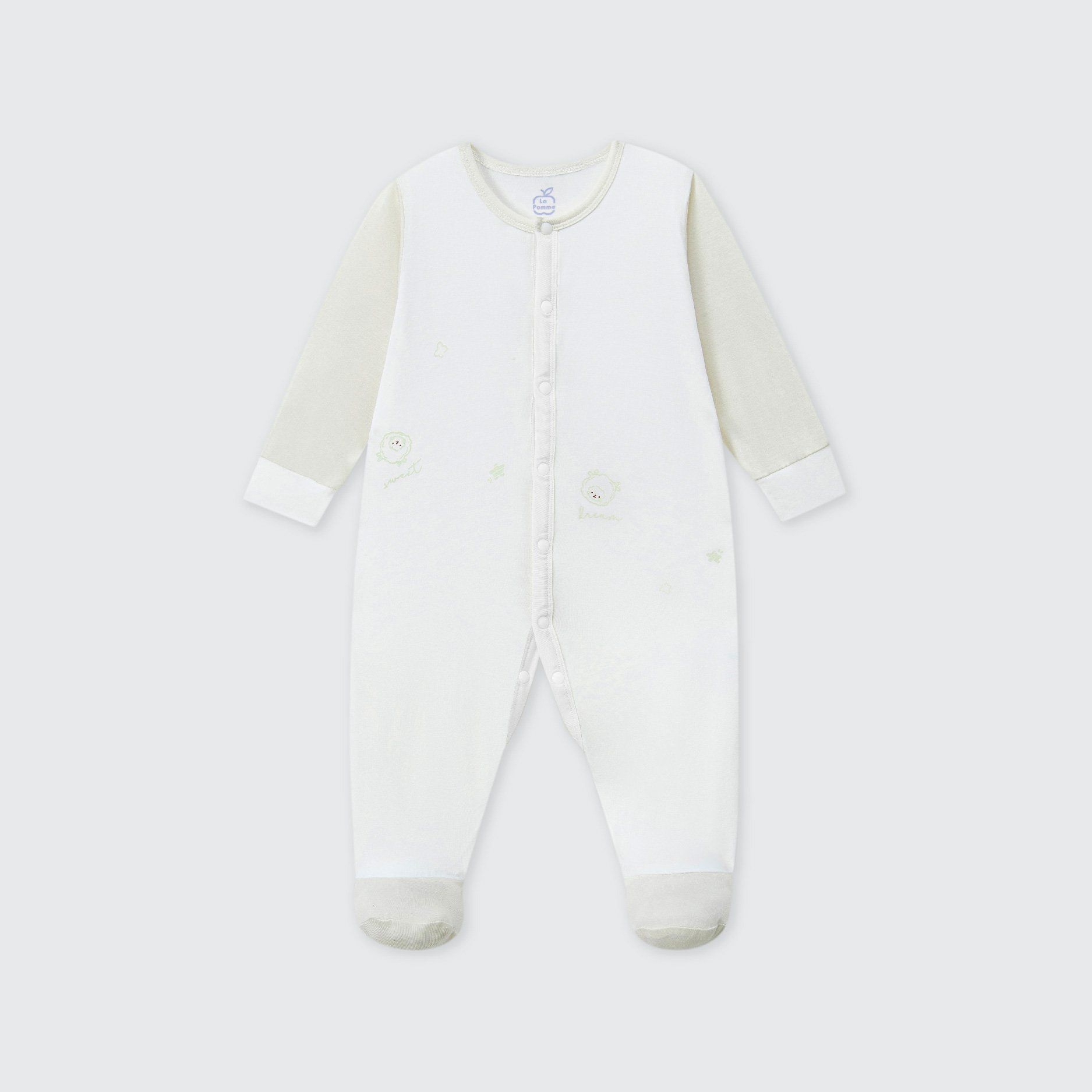 Body dài tay La Pomme liền tất họa tiết nhí cách điệu - Newborn,0,3M Be