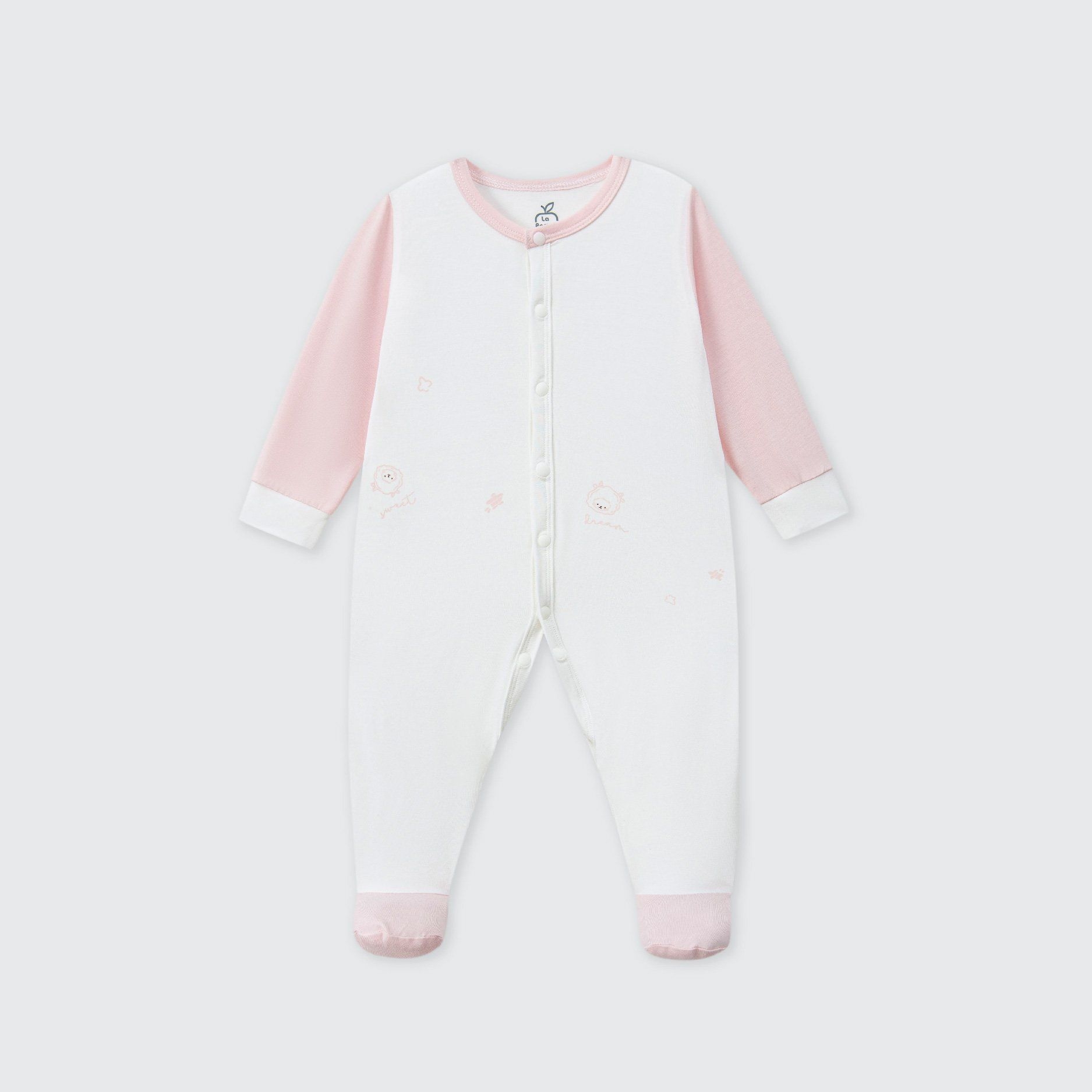 Body dài tay La Pomme liền tất họa tiết nhí cách điệu - Newborn,0,3M Hồng