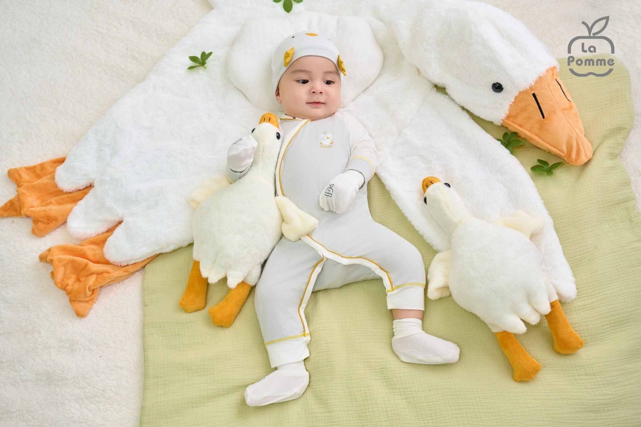 Body dài tay La Pomme ngỗng con hoạt bát - Newborn,0,3M Ghi