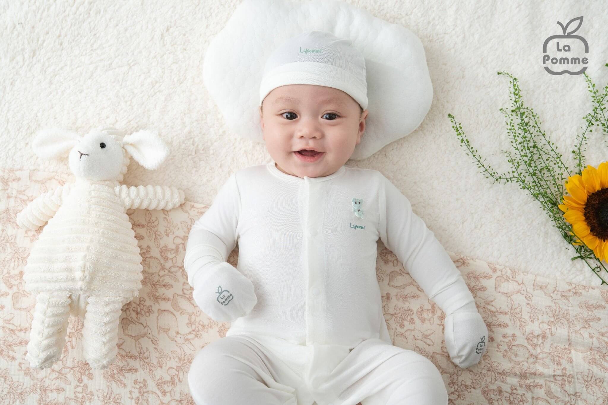 Body dài tay La Pomme Người bạn êm mềm - Newborn,0,3M Trắng