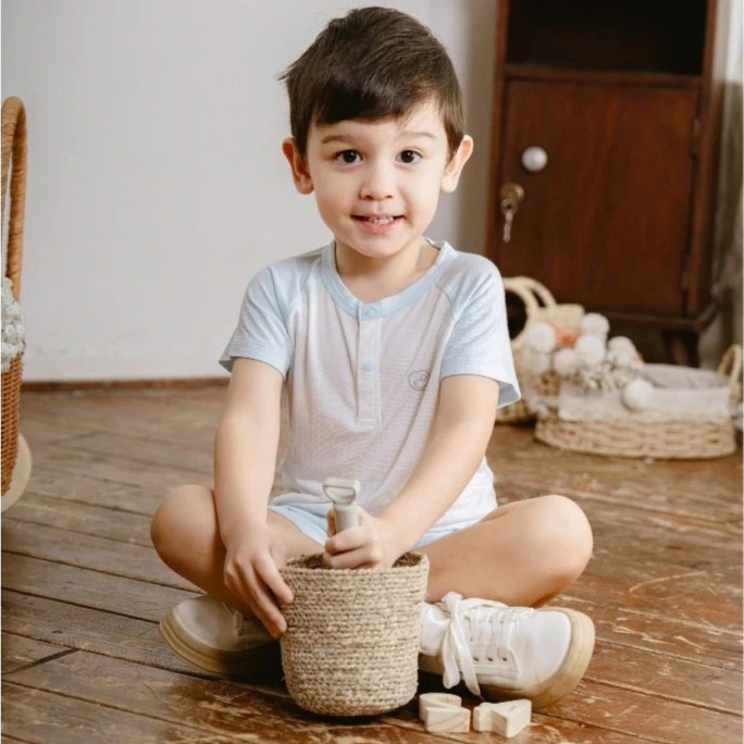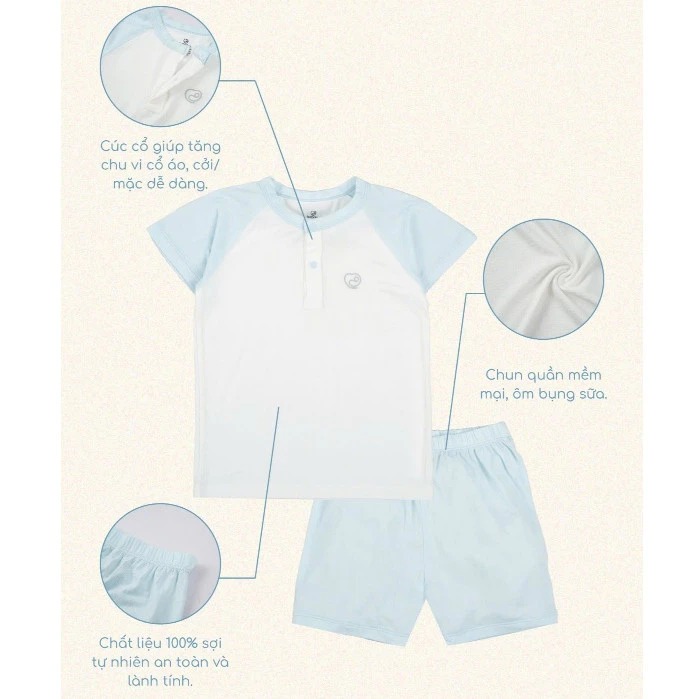 Bu Baby Bộ ngắn tay cổ trụ Siro | Trắng 4039 - Blue 4039