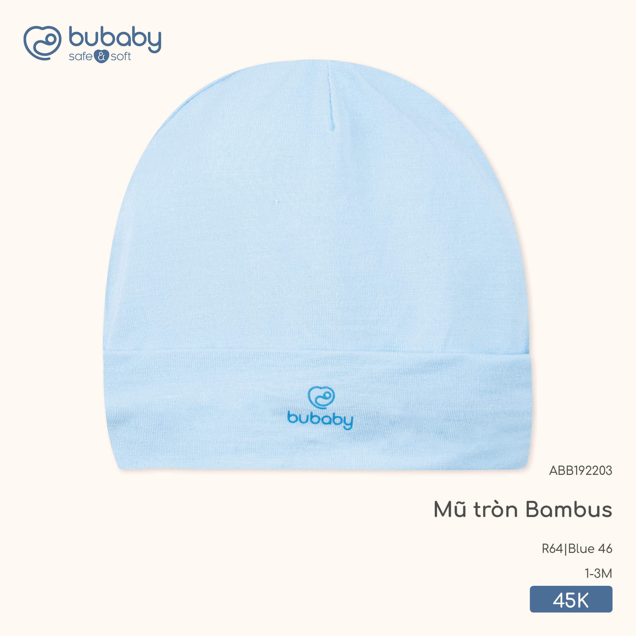 Bu Baby Mũ tròn Bambus Blue 46 (1-3M)