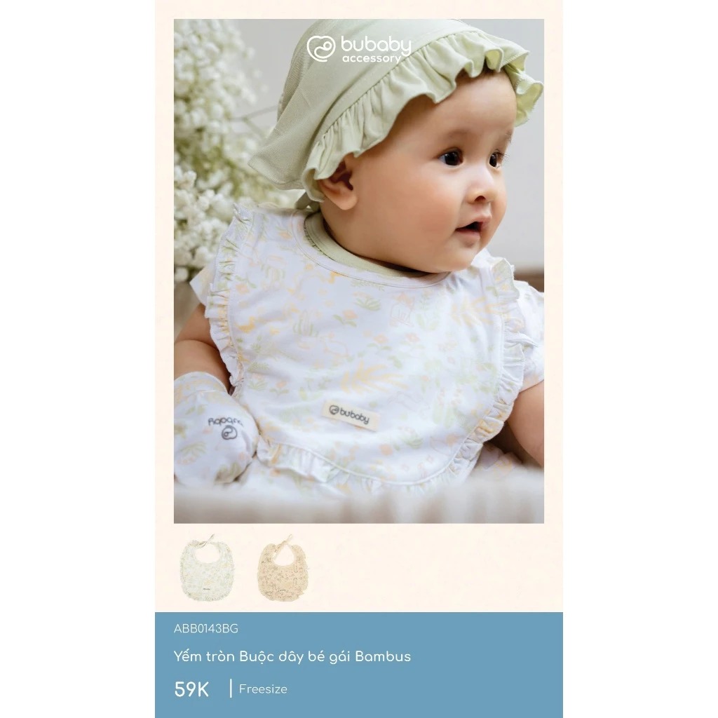 Bu Baby Yếm tròn Buộc dây bé gái Bambus | Free size - Kem in họa tiết vườn nhà