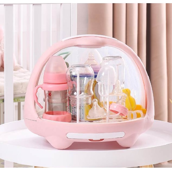 Giá úp bình sữa có nắp đậy có thiết kế nhỏ gọn, tiện lợi giúp bảo quản bình sữa, ly cốc sạch sẽ, vệ sinh. Thiết kế của giá úp bình sữa có nắp đậy có nhiều que dài ngắn khác nhau giúp cho mẹ có thể phơi khô bình sữa, nắp bình, núm vú rất tiện lợi.