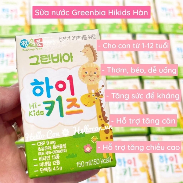 Mẹ đang tìm kiếm một loại sữa bổ sung dưỡng chất giúp con phát triển toàn diện? Hãy thử ngay sữa Greenbia Hi-kids – sản phẩm được chăm sóc và nghiên cứu kỹ lưỡng nhằm đáp ứng nhu cầu dinh dưỡng cho trẻ em từ 1 tuổi. Với hàm lượng canxi, sắt, protein cân bằng, sữa tươi Hikid sẽ giúp bé có sức khỏe tốt, cân đối và phát triển toàn diện. Hãy cùng tìm hiểu thêm về sữa Greenbia Hi-kids và tạo cho trẻ cơ hội phát triển toàn diện nhất!