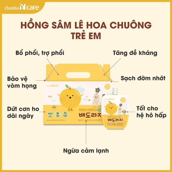 Mua ngay hồng sâm hoa lê chuông Chunho Ncare cho trẻ trên 2 tuổi chính hãng tại Hellocon.vn.
