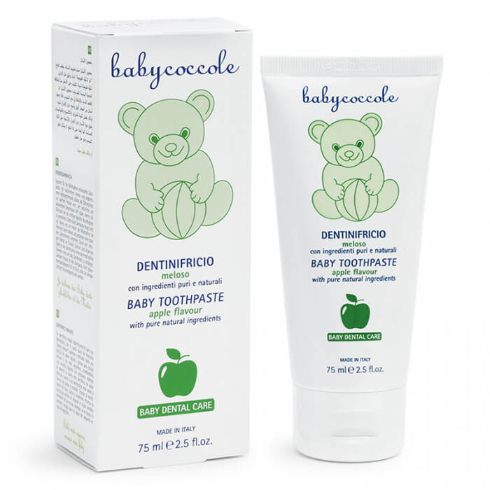 Babycoccole là kem đánh răng cho bé nuốt được bới các chiết xuất đều đều đến từ thiên nhiên cùng một lượng Fluoride an toàn là 0,095%.