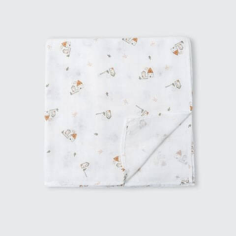 Khăn đa năng sợi tre lụa (120x120cm) - Trắng (Ngôi làng)