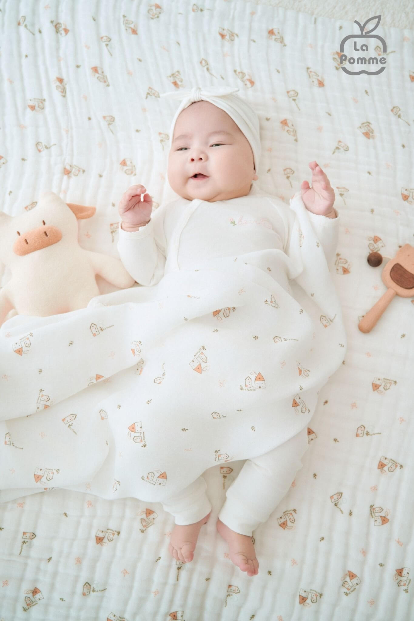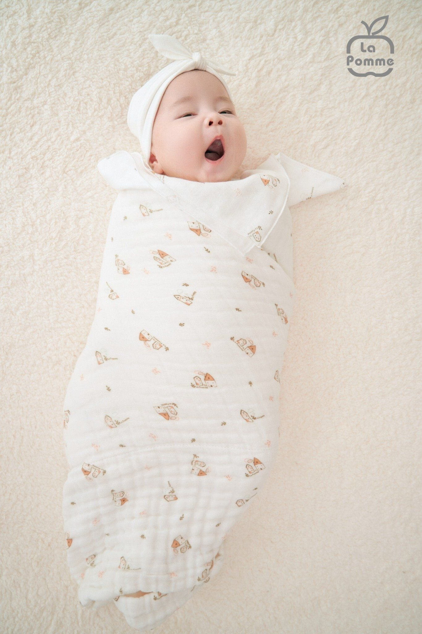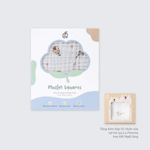 Khăn đa năng Xô Muslin 6 Lớp La Pomme họa tiết (100x100cm) - Trắng (Little House)