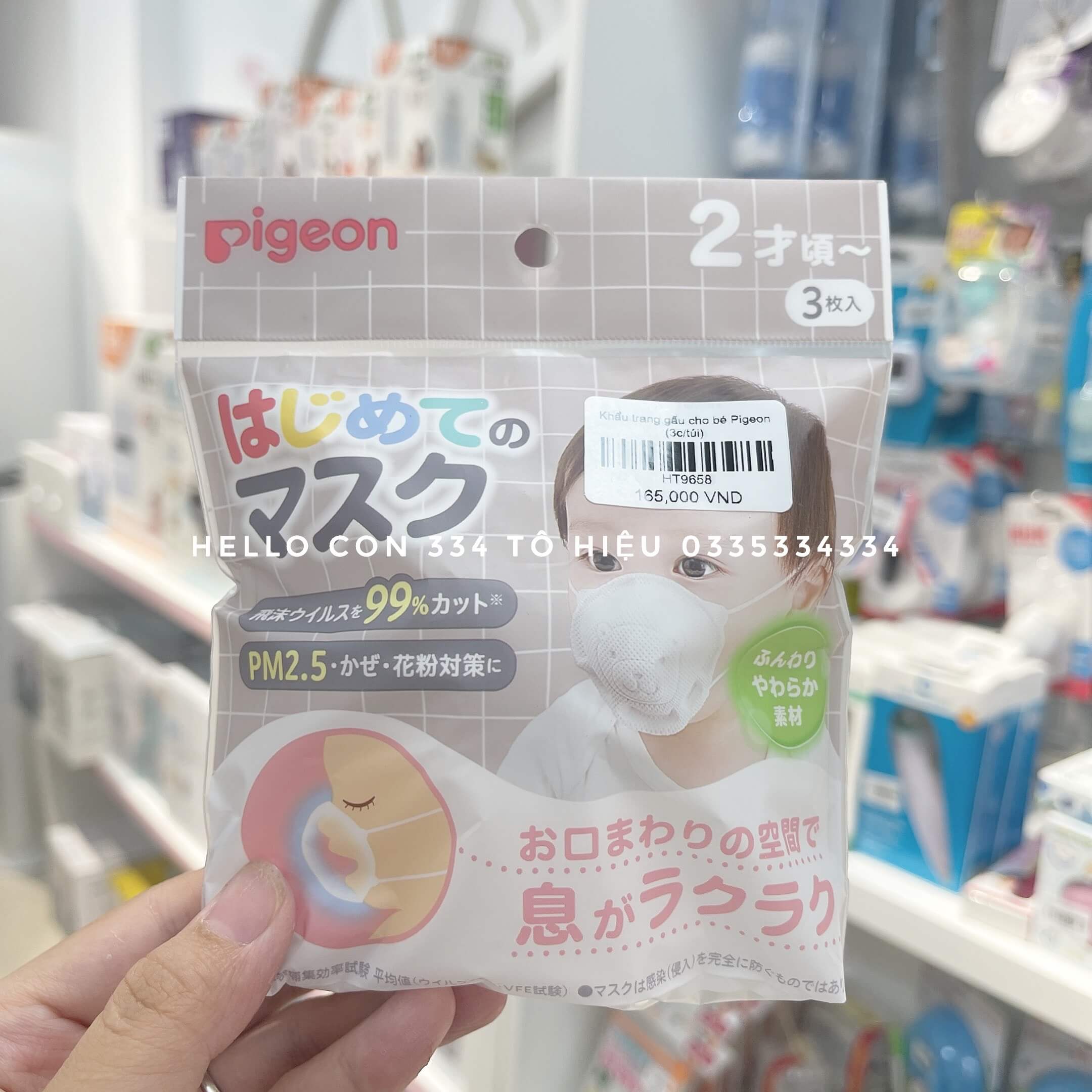 Khẩu trang gấu dùng được cho các bé từ 2 tuổi đến 6 tuổi. Tuy trẻ từ 2 tháng tuổi cũng có thể sử dụng nhưng cần người lớn giám sát. Pigeon được biết đến là thương hiệu nổi tiếng của Nhật chuyên sản xuất và cung cấp các sản phẩm cho mẹ và bé. Các sản phẩm của Pigeon đa dạng, phong phú về chủng loại và chất lượng nên nhận được nhiều sự tin tưởng của các mẹ trong đó có khẩu trang Pigeon. Sản phẩm có 2 phân loại set 3 chiếc và set 7 chiếc đáp ứng riêng nhu cầu của từng mẹ Việt nuôi con.