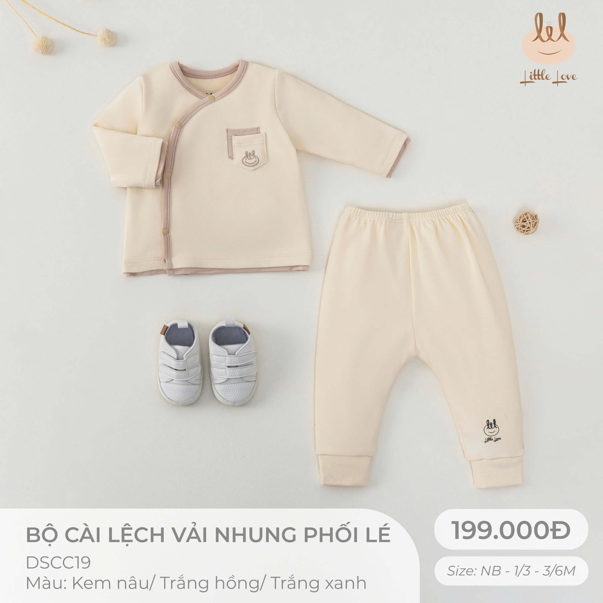 Little Love bộ cài lệch vải nhung phối lé kem nâu (3-6M,1-3M,Newborn)