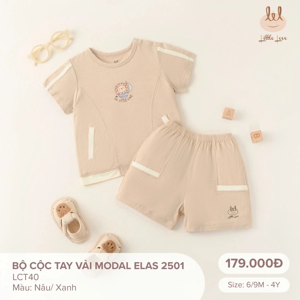 Little Love Bộ cộc tay vải modal elas 2501 nâu 6M,9M,12,18-24M, 3Y