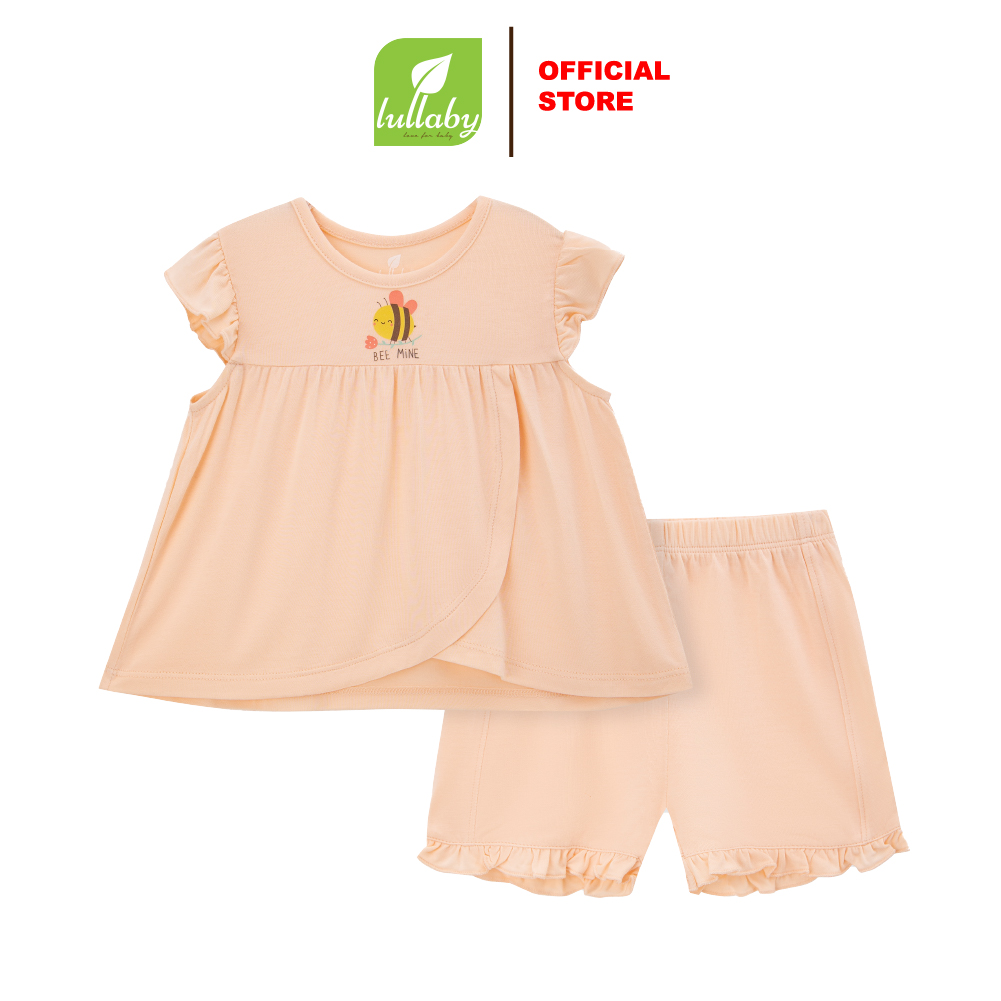 Lullaby Bộ bé gái cộc tay bèo NH366N - Hồng cam - 9,12,18,24M,3Y