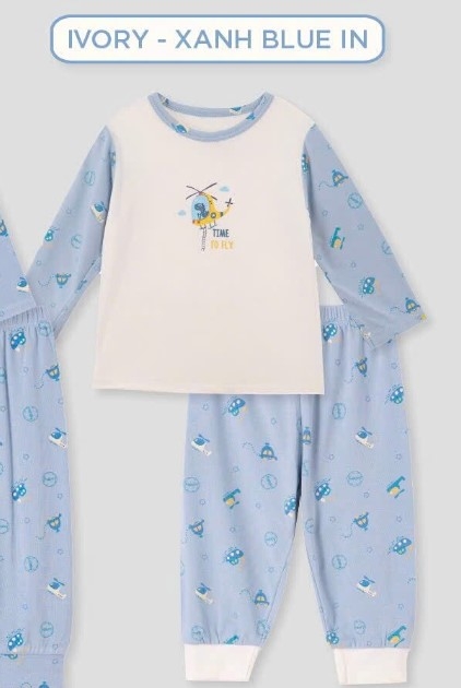 Lullaby Bộ bé trai dài tay NH451N - Ivory-Xanh blue in - 12,18,24M,3Y,4YM