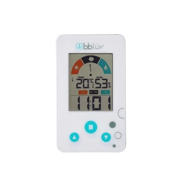 Thiết bị ẩm kế Bbluv Lgro được tích hợp màn hình LCD với độ tương phản cao cho phép các mẹ đọc kết quả chính xác trong thời gian nhanh nhất. Người dùng sẽ dễ dàng tùy chỉnh máy điều hòa, hút ẩm, tạo ẩm,... để giữ cho nhiệt độ và độ ẩm trong phòng luôn ở mức lý tưởng nhất. Nhiệt ẩm kế Bebe Confort sử dụng loại pin AAA thông dụng. Mẹ có thể dễ dàng mua pin để thay ở bất kỳ các cửa hàng gần nhà. Nhiệt ẩm kế Bbluv Lgro có giá bán 215.000đ. Đây là mức giá rẻ cho dòng nhiệt ẩm kế đo phòng mà mọi người nên lựa chọn.