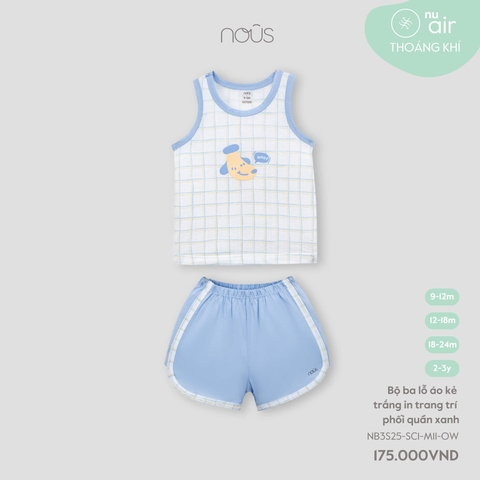 Nous Bộ ba lỗ áo kẻ trắng in trang trí phối quần xanh 9,12,18M,2Y
