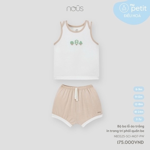 Nous Bộ ba lỗ áo trắng in trang trí phối quần be 6,9,12,18M, 2Y