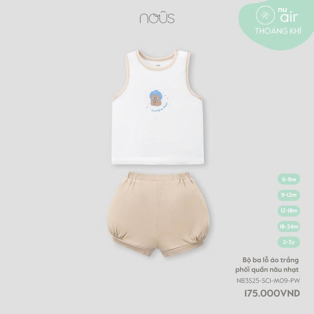 Nous Bộ ba lỗ áo trắng phối quần nâu nhạt 6,9,12,18M,2Y